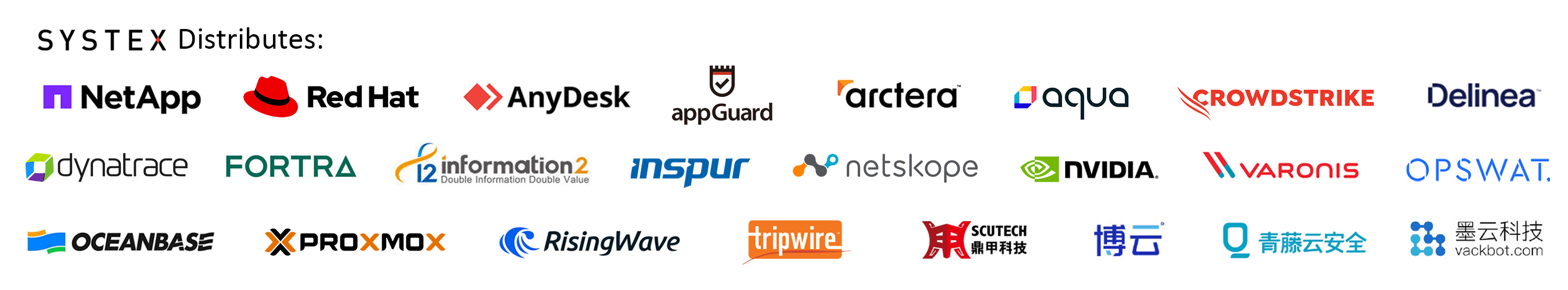 NetApp: Vincent Chan & Jerry Chan Red Hat / Aqua: This email address is being protected from spambots. You need JavaScript enabled to view it. Red Hat / Proxmox: This email address is being protected from spambots. You need JavaScript enabled to view it. AnyDesk / AppGuard / Arctera / Fortra / Information2 / Inspur / NVIDIA / Oceanbase / RisingWave / Tripwire / Varonis / 鼎甲 / 博云 / 青藤: Martin Leung Delinea / Dynatrace / Netskope / OPSWAT: Frank Leung